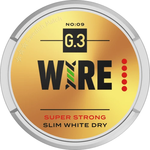 G.3 Wire Super Strong Slim Portion: Denna snusprodukt är designad för dig som vill ha en extra stark nikotinhit utan att ge avkall på smaken. De smala portionerna passar perfekt under läppen och har en läcker blandning av smaker av pepparmynta och grönmynta.