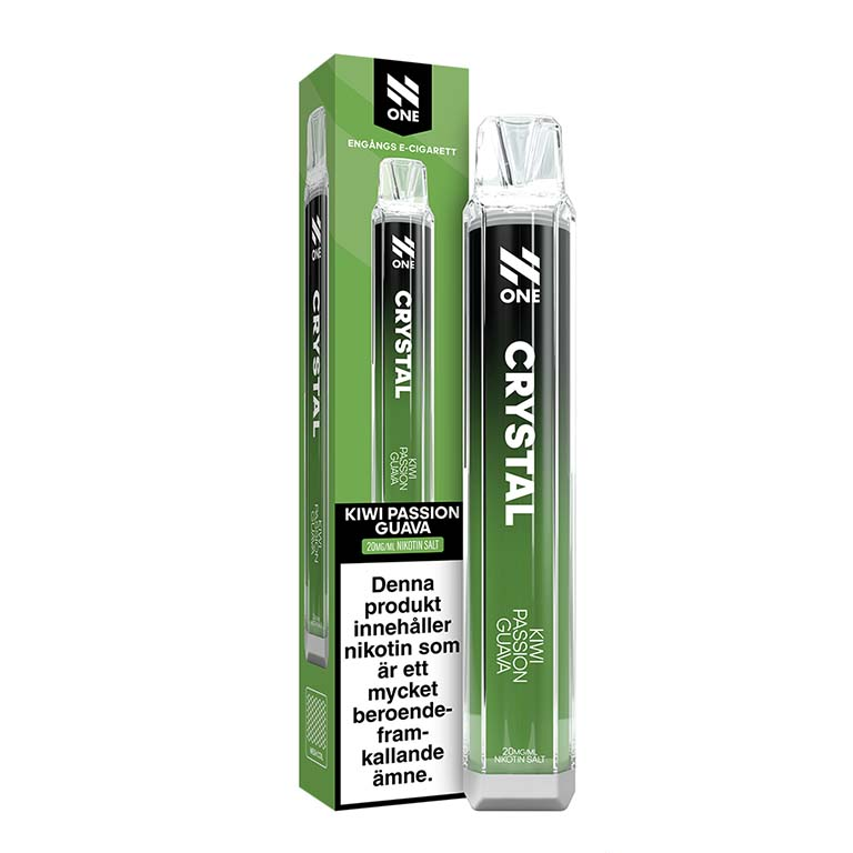 N One Crystal Kiwi Passion Guava med en smak av kiwi, passionsfrukt och guava. NIKOTINSTYRKA: 20mg/ml