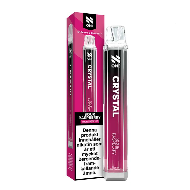 N One Crystal Sour Raspberry med smak av sura hallon. NIKOTINSTYRKA: 20mg/ml