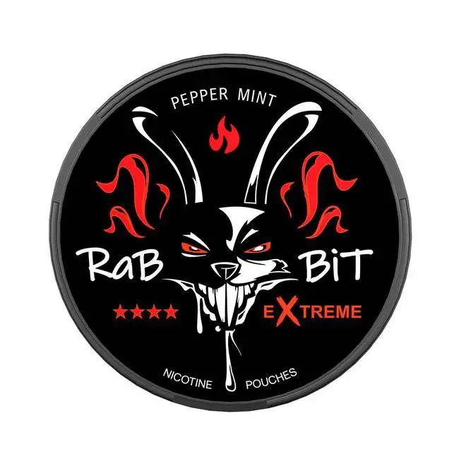 Rabbit Peppermint: Rabbit Peppermint är ett fräscht och mintigt helvitt snus som kombinerar mentolens svalka med pepparmyntans krispighet. Påsarna är smala, diskreta och torra vid beröring, och ger en långvarig och tillfredsställande nikotinkick utan några tobakssmaker eller fläckar. Kaninpepparmynta är ett perfekt val för dig som vill fräscha upp andedräkten och smaklökarna. NIKOTINSTYRKA: 83mg/g