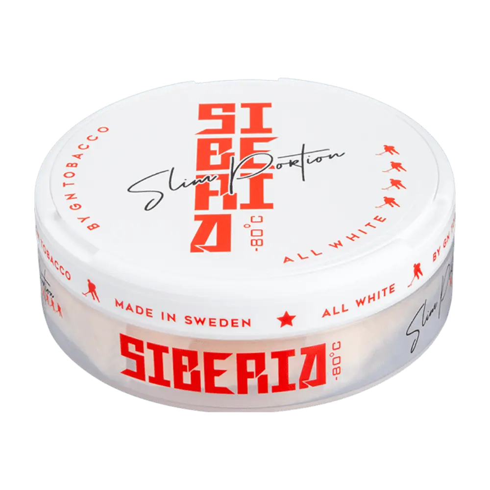 Siberia -80 Slim: Siberia -80 Slim är ett kraftfullt och intensivt helvitt snus som innehåller hela 43 mg/g nikotin, vilket gör det till en av de starkaste snusprodukterna på marknaden. Påsarna är smala, diskreta och torra vid beröring, vilket ger en långvarig och stimulerande nikotinupplevelse utan några tobakssmaker eller fläckar. Siberia -80 Slim är ett perfekt val för erfarna snusare som vill tänja på sina gränser. NIKOTINSTYRKA: 33mg/g
