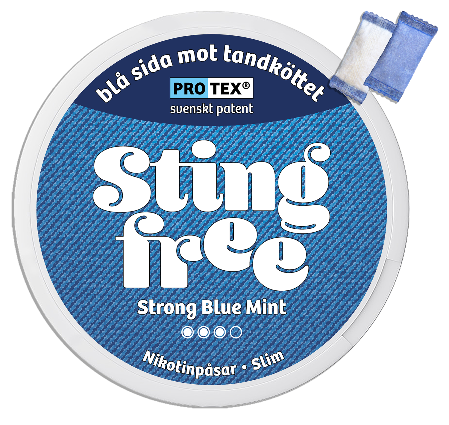 Stingfree Strong Blue Mint är den första smaken i en serie produkter med Stingfree-teknologi. Prillorna har fräsch mintsmak, diskret sötma och ett patenterat blått skydd för tandköttet som motverkar sveda/irritation. Skyddet gör även att smak- och nikotinupplevelsen varar längre än vanliga prillor.Om produkten Stingfree Strong Blue Mint Slim All White Portion