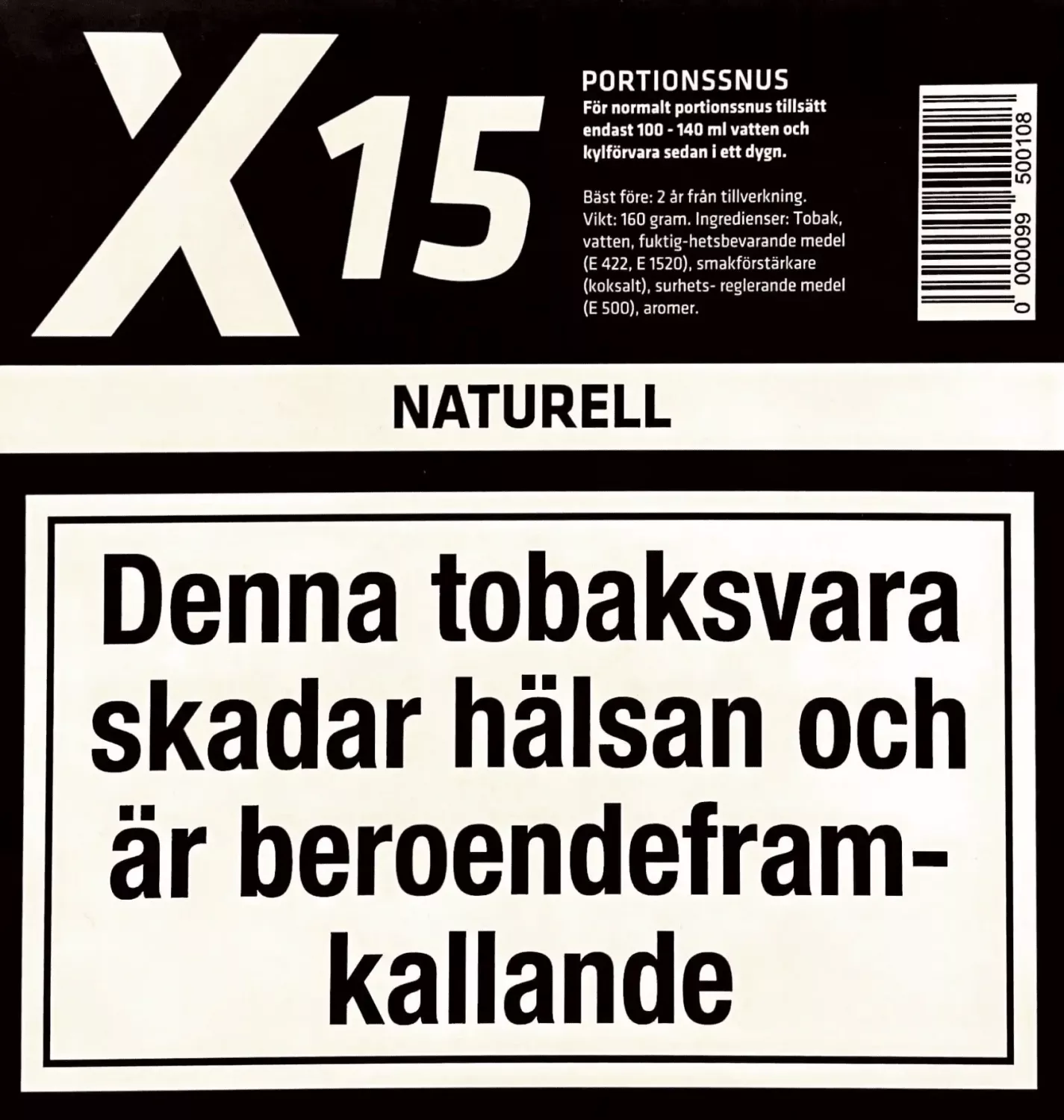 NY VIKT 160g! X-15 Naturell: Detta är en snusblandning som erbjuder en naturlig och autentisk smak av tobak. Den har en mild smak och är perfekt för den som föredrar en klassisk tobakssmak.