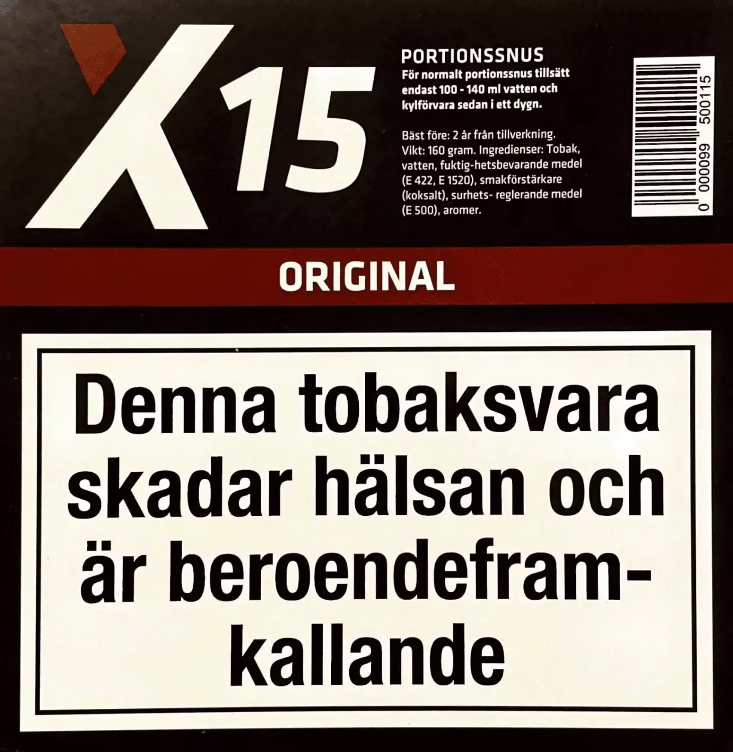 NY VIKT 160g! X-15 Original snussats är det perfekta valet för dig som vill uppleva den autentiska smaken av traditionellt snus. Denna snussats innehåller högkvalitativ tobak och andra naturliga ingredienser, vilket ger dig en rik och tillfredsställande smak. X-15 Original snussats kommer med allt du behöver för att göra ditt eget snus hemma, inklusive färdigblandad tobak, portionspåsar och instruktioner. Tobaksblandningen är noggrant utvald för att ge en balanserad smak och arom som får dig att komma tillbaka för mer. Med X-15 Original snussats kan du njuta av smaken av premiumkvalitetssnus till ett överkomligt pris.